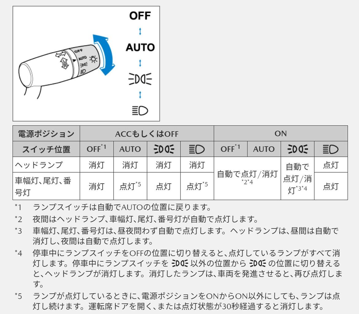今回のロードスターの改良でも同様な変更が行われていました。2020年商品改良ロードスターの取扱説明書を確認すると、ランプスイッチが新世代型に変更されています。