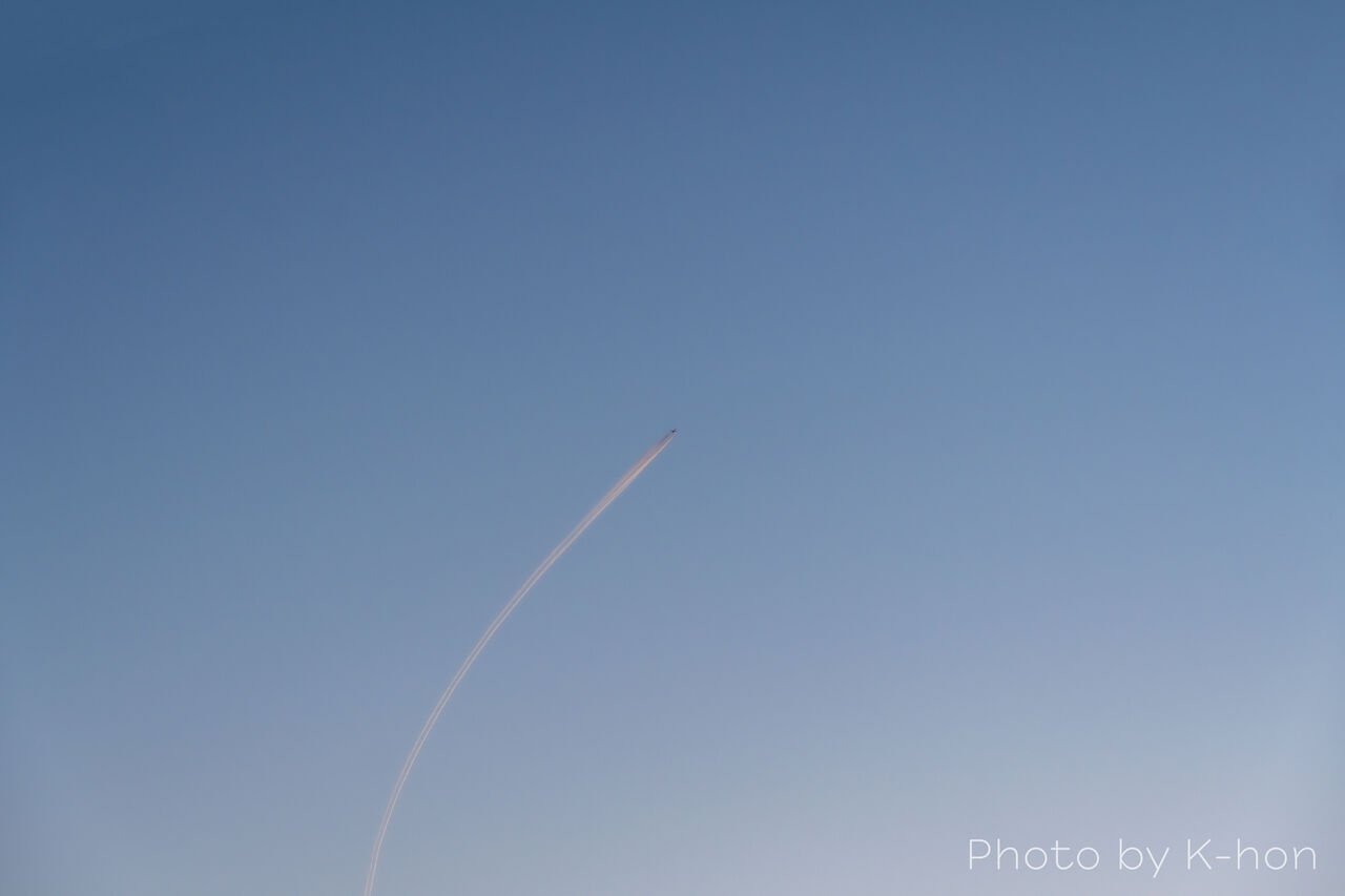 日が少しづつと昇っていき、辺りが明るくなってきました。朝日に照らされ始めたロードスターを眺めていると空には飛行機が飛行機雲を出しながら飛行していました。