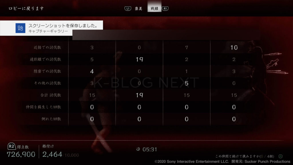前回:【PS4】Ghost of Tsushima 冥人奇譚の「手柄」を100%にするために必要な日数について考える