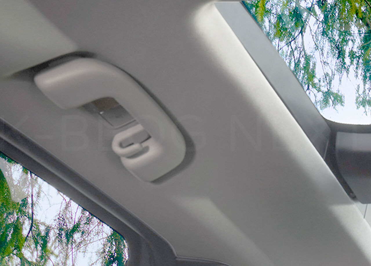 パノラマサンルーフ(ムーンルーフ)が存在する関係でこの場所になったようですねぇ。この場合の使い勝手がどうなのか気になるところです。それとアシストグリップにあるフック部分の使い勝手も気になりますねぇ。ものを干すのに役立ちそうです。