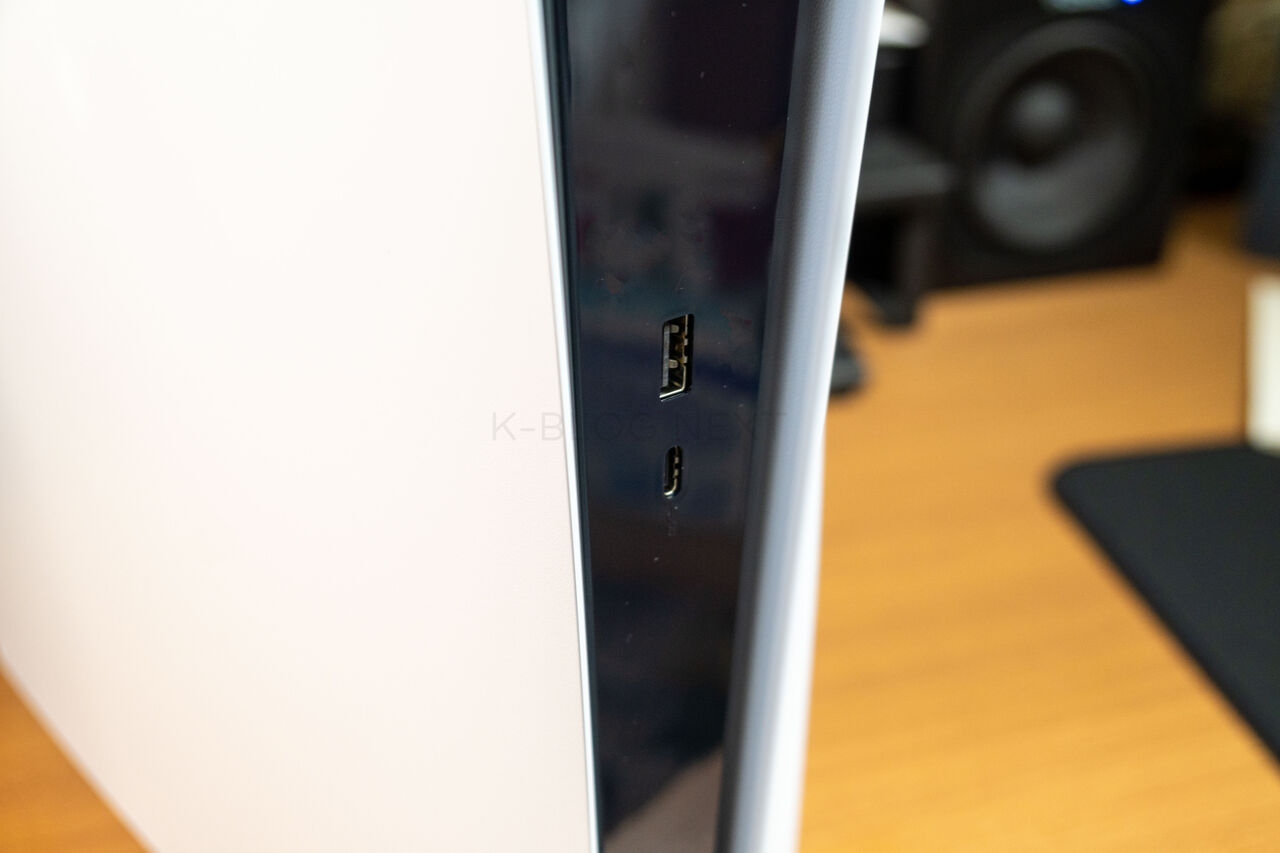 片方が「USB 2.0 Type-A」でもう片方は「USB 3.1 Type-C」となっています。念願のType-C対応となっているのが素晴らしいですねぇ。ただ、USB2.0が前面にあるのが少し不思議です。これはコントローラーの充電用なのでしょうか?