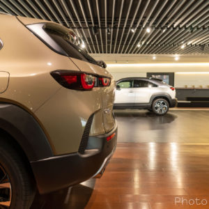 キーの「アンロック」ボタンを長押しすると自動的に車両の窓が開いているのを確認することが出来ました。これはなかなか面白い機能ですねぇ。暑い日などには重宝しそうです。ちなみにCX-50でもできるようで、Youtubeのショート動画などに上がっていました。どのモデルから出来るようになっているのかが気になるところです。