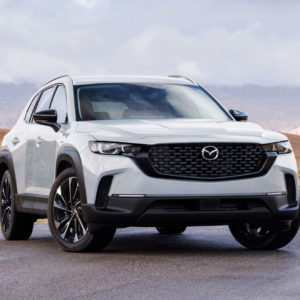 CX-80は右ハンドルの6人乗り仕様(ソウルレッド?)となっており、ちゃんと6人乗っていますね。3列目に座っている子供がサッカーボールをアームレストにしているのがちょっと気になります。3列目にもアームレスト欲しいですよね。