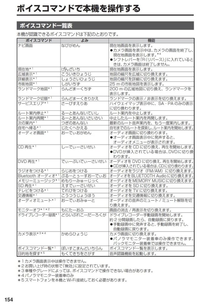 しかし、改めて純正ナビ(パナソニック製)の説明書を見てみると「ボイスコマンド」という機能が上記の音声認識とは独立した機能であるということに気づきました。