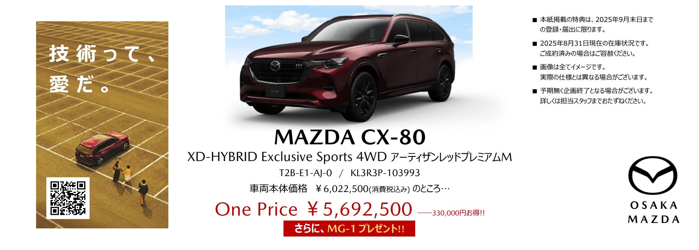 情報元:大阪マツダSUPER WEEK!! _ 新車CX-5、CX-60,CX-80ご購入時に特別特典!8月31日まで! _ 大阪・関西でマツダ車のご用命は大阪マツダ販売株式会社へ