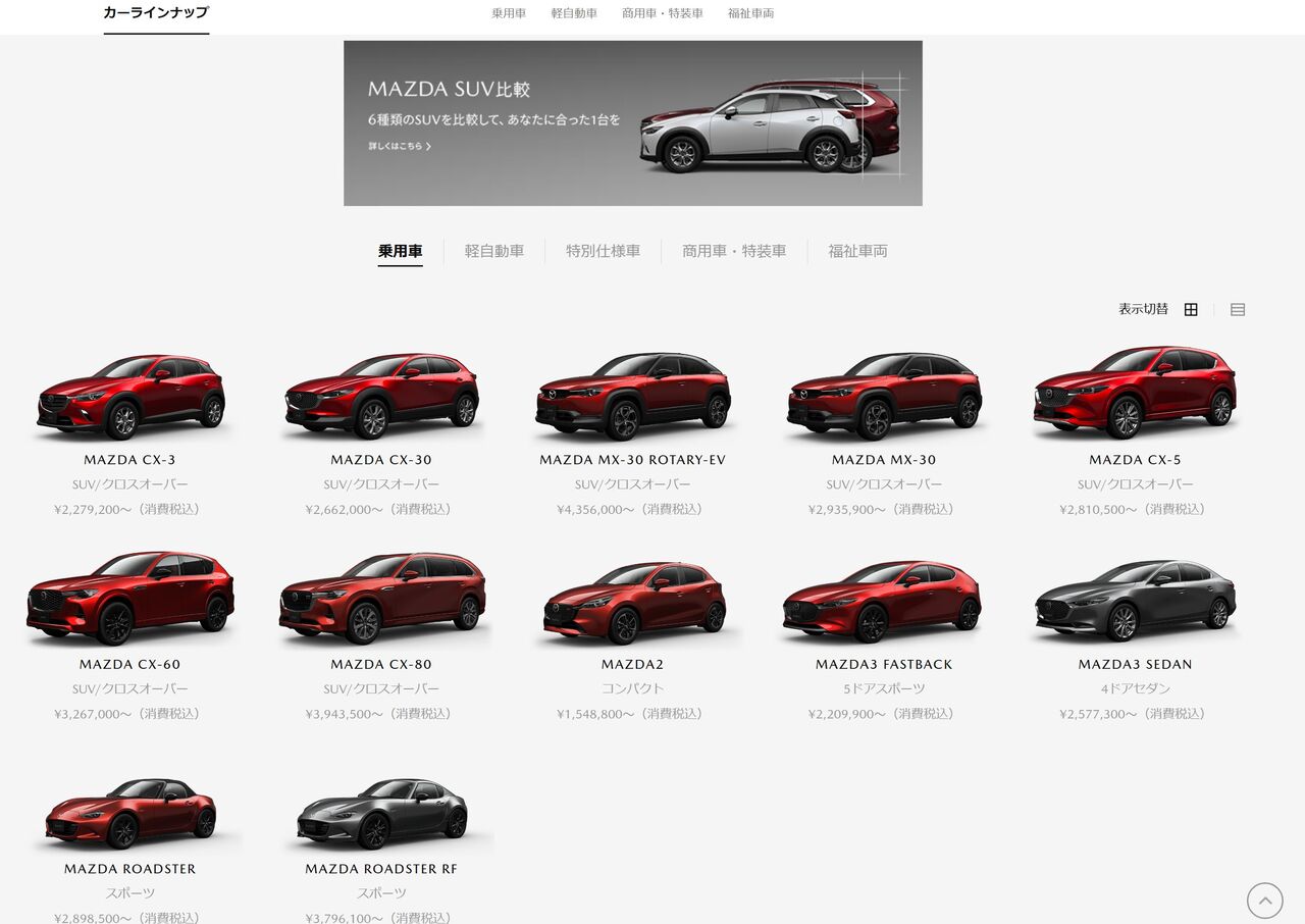 個人的には、マツダの公式ページは他社と比べて見辛いと感じています。そこら辺も刷新された欲しいですねぇ。
