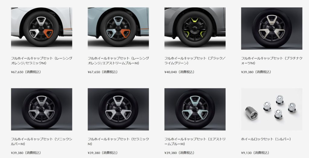 そこで、アクセサリラインナップなどを色々と見ていたんですけど、いつのまにかホイールキャップセットに様々なカラーが追加されていることを知りました。