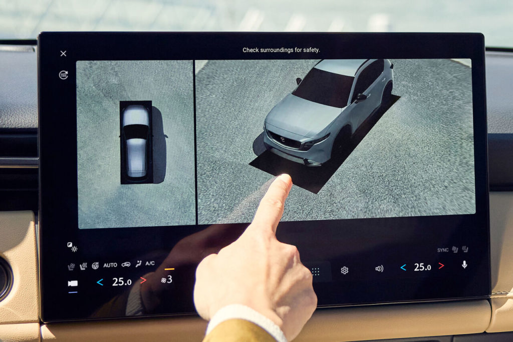 他メーカーでも360°ビューカメラは当たり前のように搭載されていますが、カメラの画質が悪かったり、表示されるディスプレイのサイズが小さかったりとカメラとディスプレイのバランスが悪かったのが、今回のマツダは両方のバランスが非常に良い感じ。