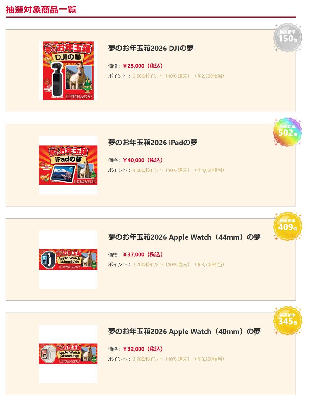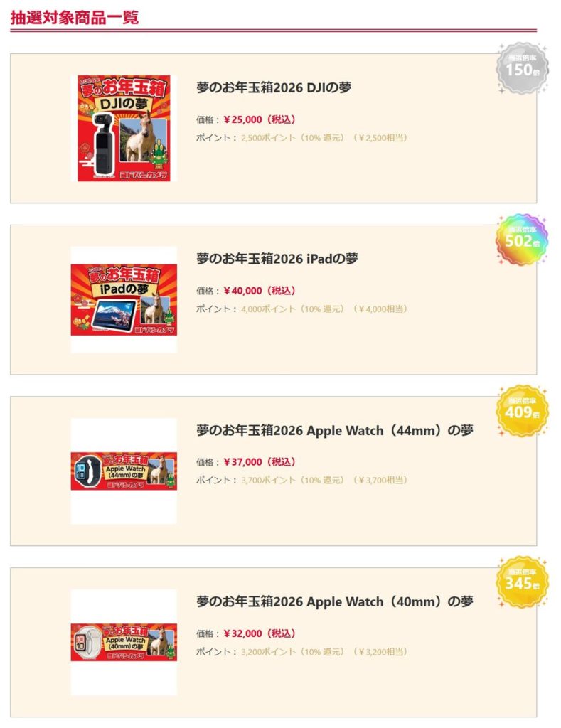ヨドバシ.comで今年も「夢のお年玉箱」が開催されていました。