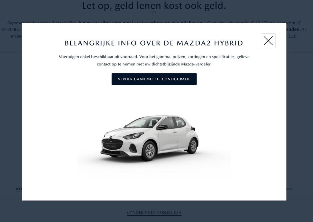 こちらのコンフィグレータで「MAZDA2 HYBRID」をクリックすると以下のポップアップが表示さました。