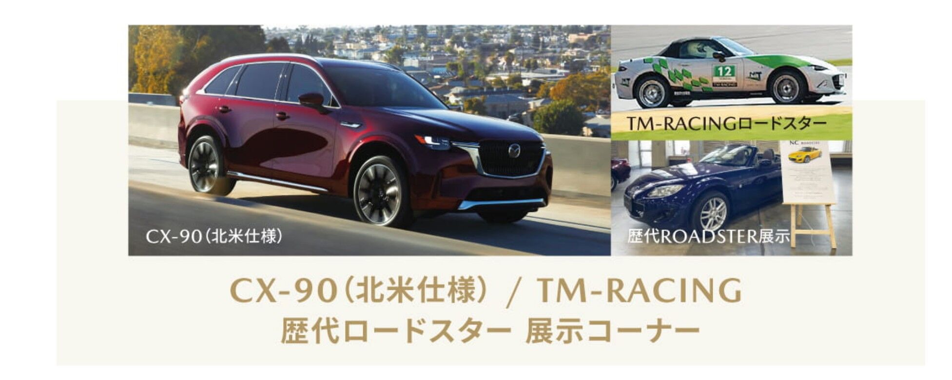 こちらでは、2026年1月に開催される2026初売り大商談会の詳細についてが掲載されていました。その中に「CX-90(北米仕様)」が展示されることが予告されていました。