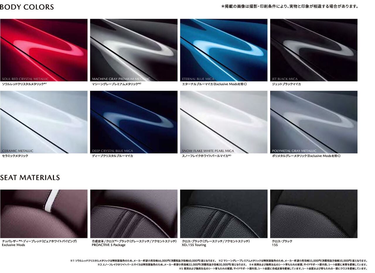 それによると、CX-3の最上位グレード「Exclusive Mods」では今回新しく追加された「ポリメタルグレーメタリック」は選択できないようです。