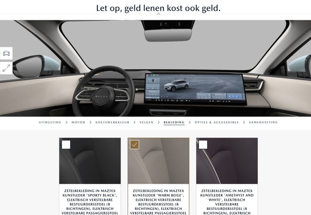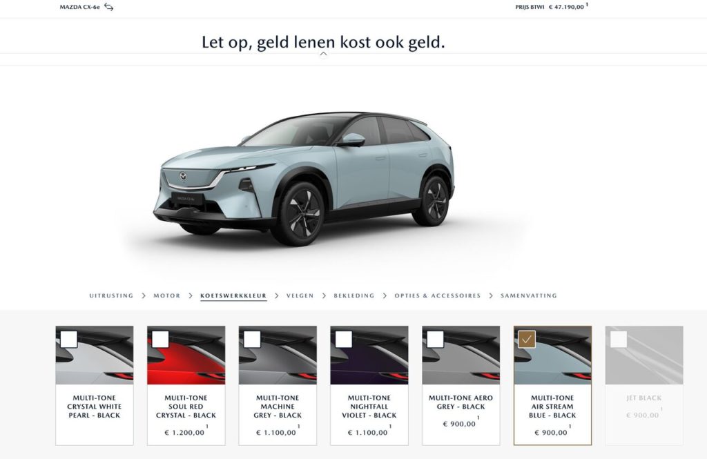 欧州のマツダ公式サイトでコンフィグレータに追加されたので、色々見てみます。