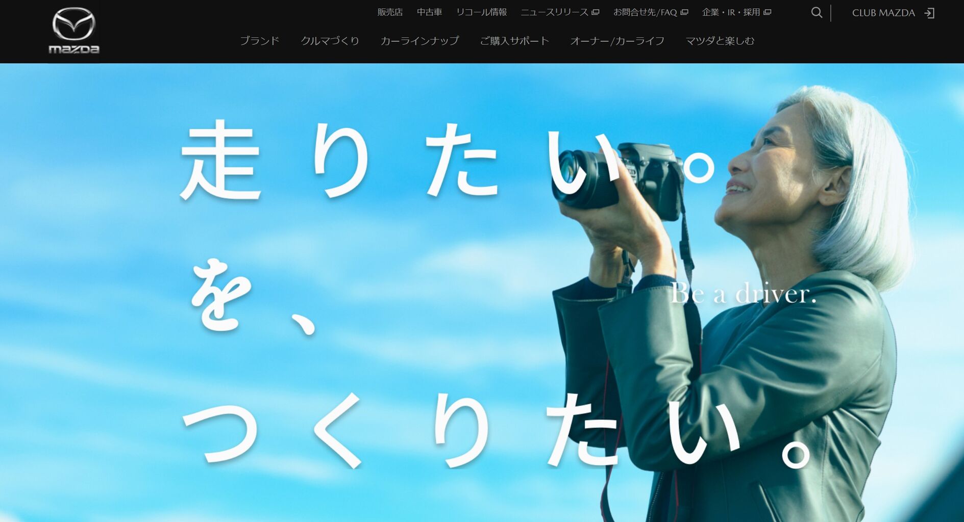 このキャッチフレーズは、マツダがかなり前に商標申請したものですね。それがこのような形で使用されるとは思いませんでした。ちょっと気になるのが、ページ名が「走りたい。を、作りたい」となっており、”つくりたい”が漢字で統一感がないところです。こういう所は統一してほしいですね。
