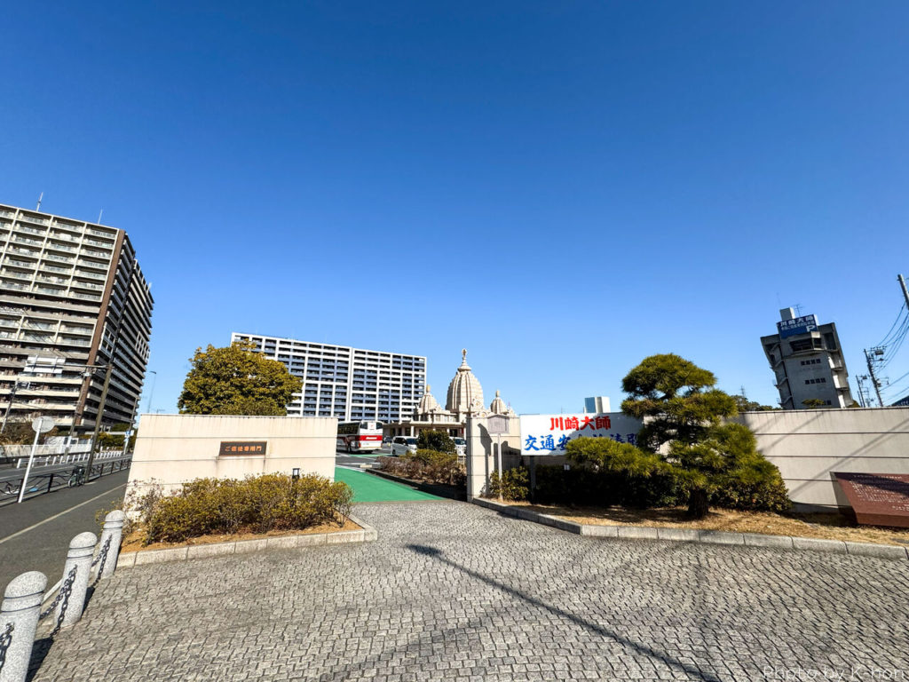 川崎大師の駐車場は、首都高横羽線の「大師IC」横にありました。川崎大師の自動車交通安全祈祷殿に隣接しており、一見参拝者は駐車できないのかと思ってしまいますが、広大な参拝者用駐車スペースが確保されていました。