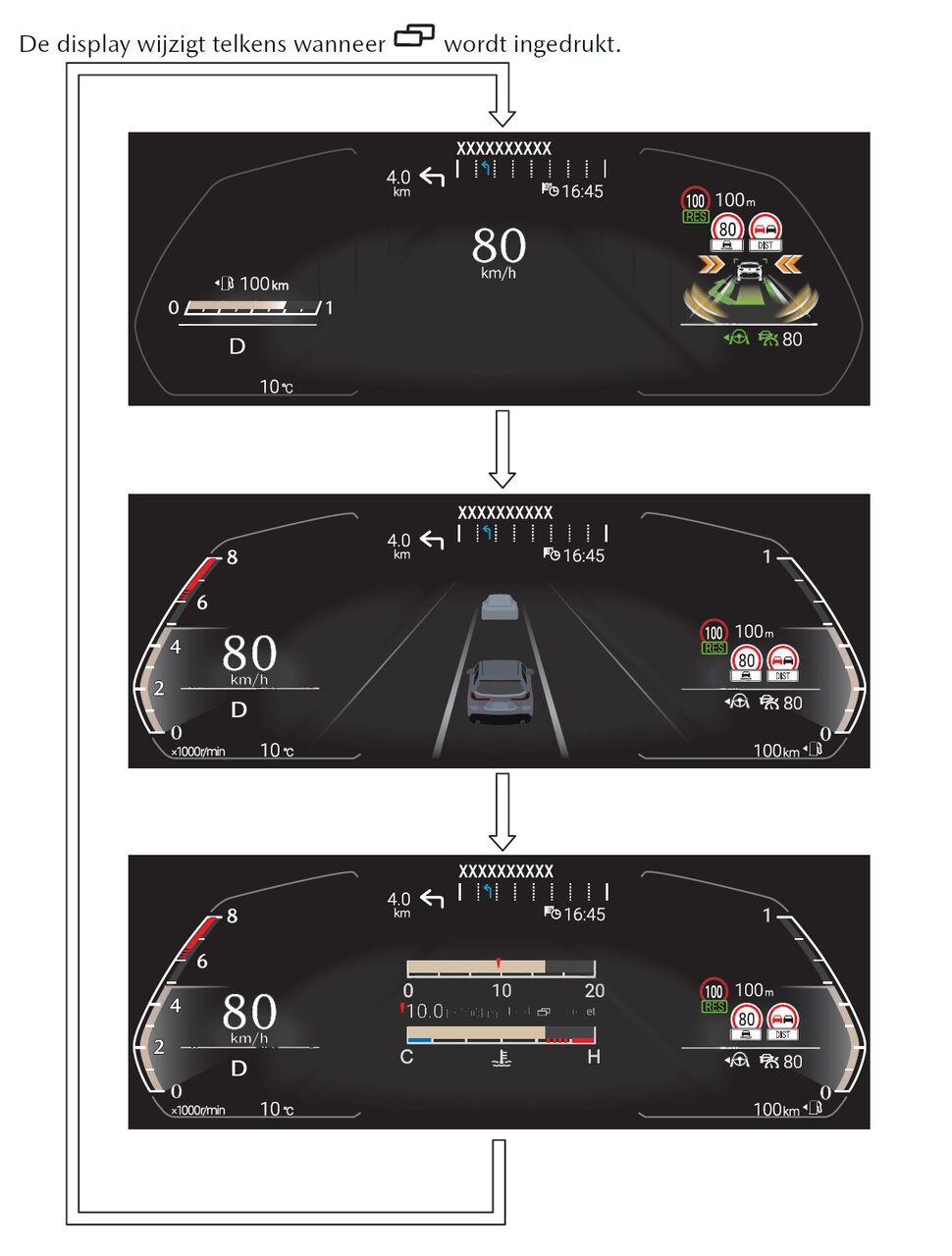 ステアリングホイールスイッチを押すごとに以下のように切り替わるそうです。