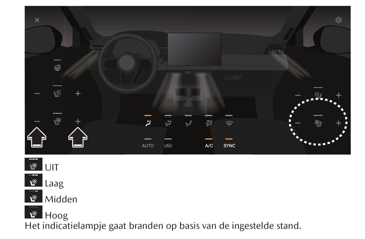 簡易的なエアコン操作をする場合は、常に画面下に表示されている部分で操作可能となっています。より詳細な機能(シートヒーターなど)を操作する場合、画面下の簡易エアコン操作パネル部分から上へスワイプすることで上記の画面が表示されるんだとか。