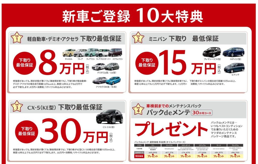 そこでは新車ご登録10大特典が書いてあり、その中に「CX-5(KE型)下取り最低保証」が載っていました。