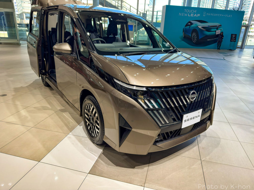 私が新型セレナを生で見るのは、ジャパンモビリティショー2025に展示されて以来ですね。あの時はステージに展示されていたので近くで見ることができませんでした。