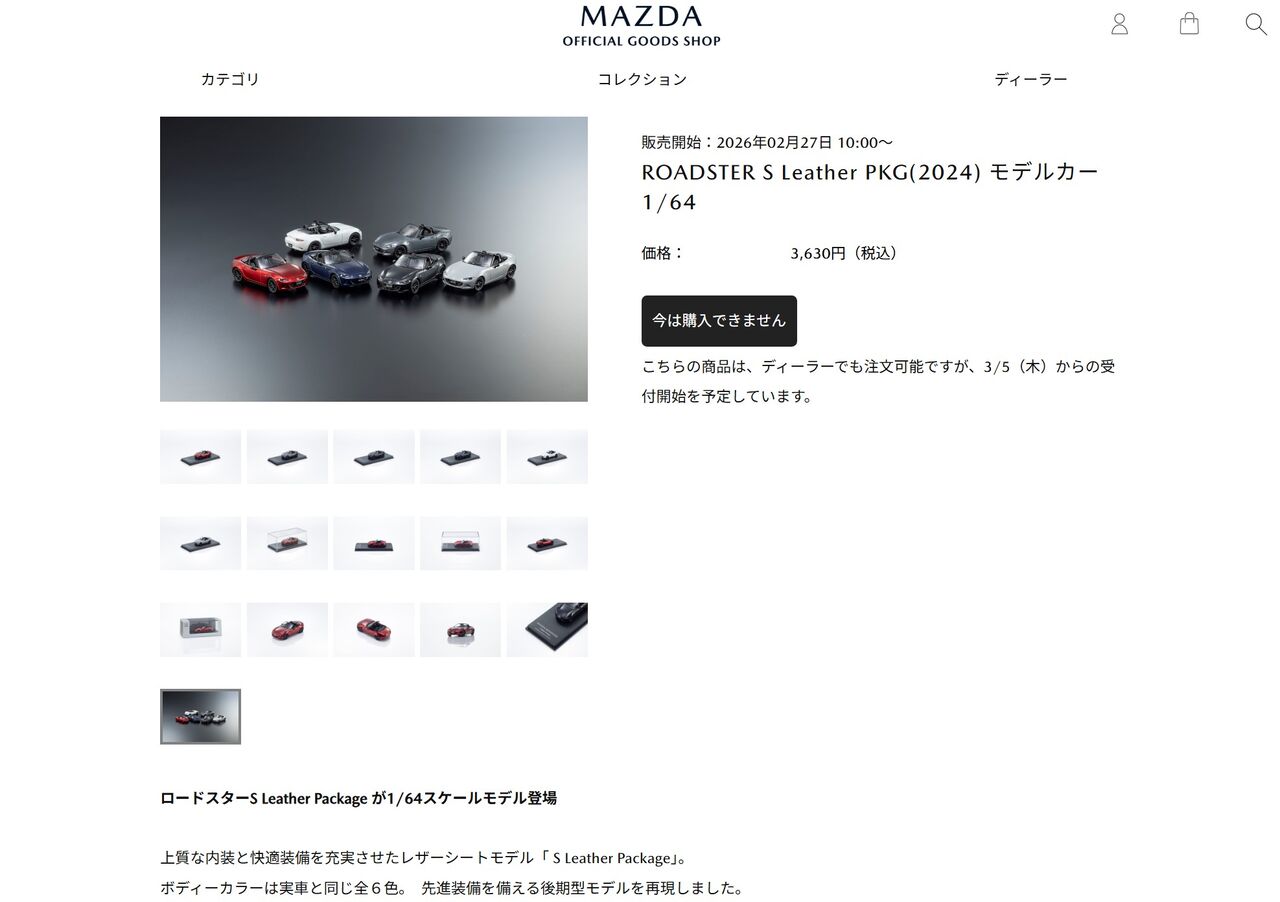 2024年モデルのロードスターは高価なモデルカーばかりでしたが、こちらのモデルカーは「3,630円」と大変お求めやすい価格となっています。ボディカラーも豊富ですので、気軽にロードスターのモデルカーが欲しい人にはうってつけですよね。