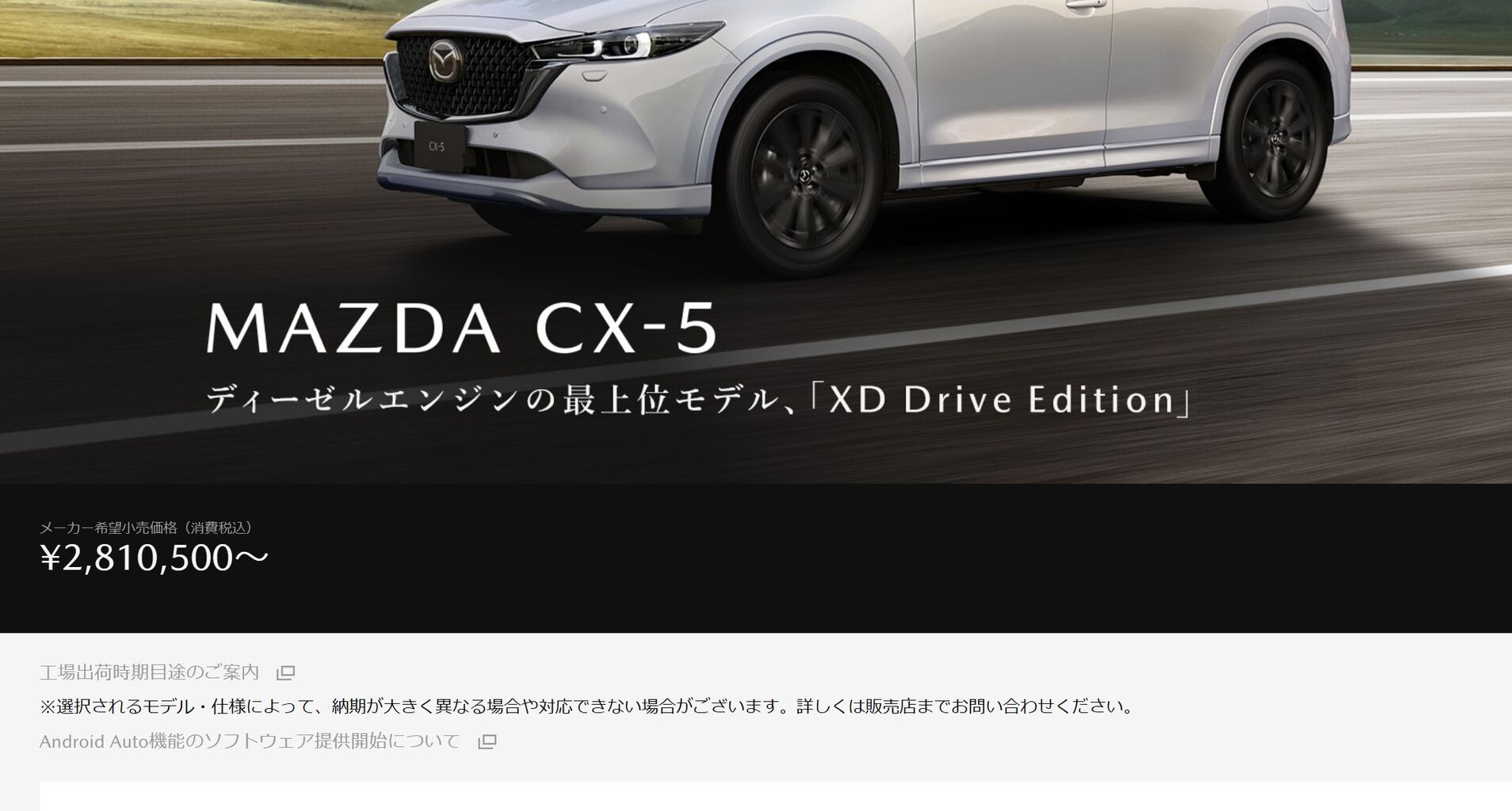 一時期、マツダ公式ページは工場出荷時期目処で「Cx-5のガソリンエンジン搭載モデルは在庫のみ」と書いていましたが、すぐに削除していました。
