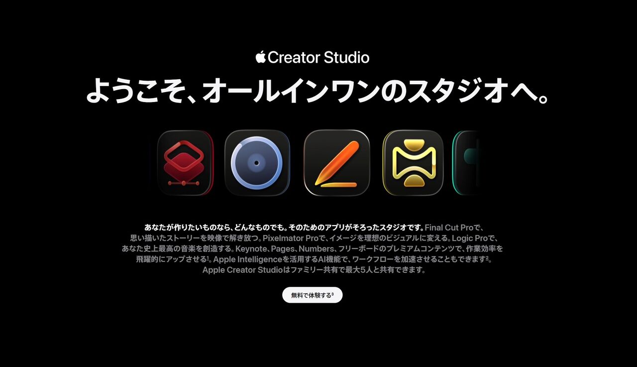 ちょうど「Apple Creator Studio」の無料体験キャンペーンが実施されているので体験してみることに。