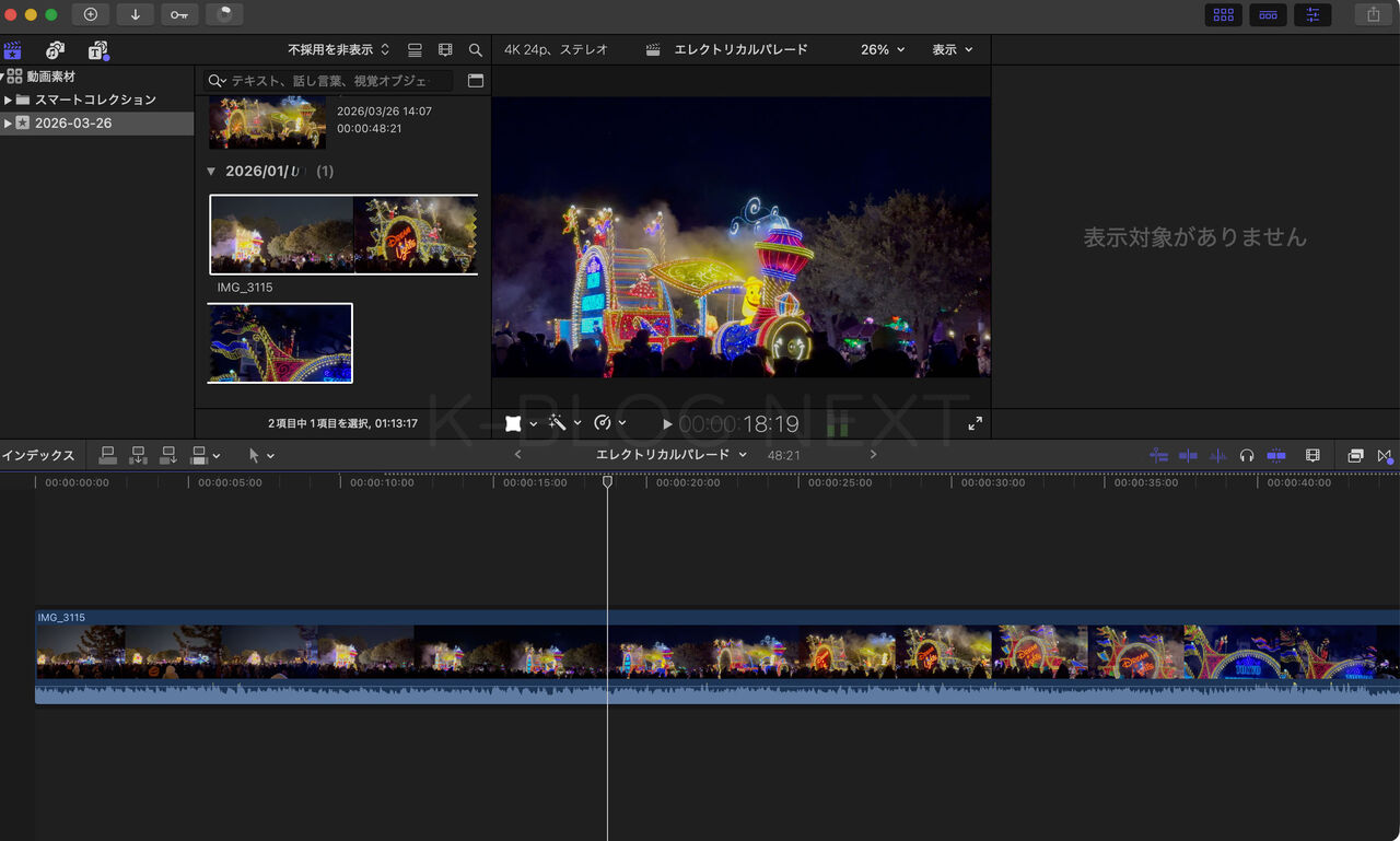 iPhone 15 Proで撮影した4K動画を編集していますが、MacBook Neoでも特に不満なく編集することができました。AI系の機能やエンコードなどはかなり重そうな挙動をしますけど、それ以外は大丈夫でした。