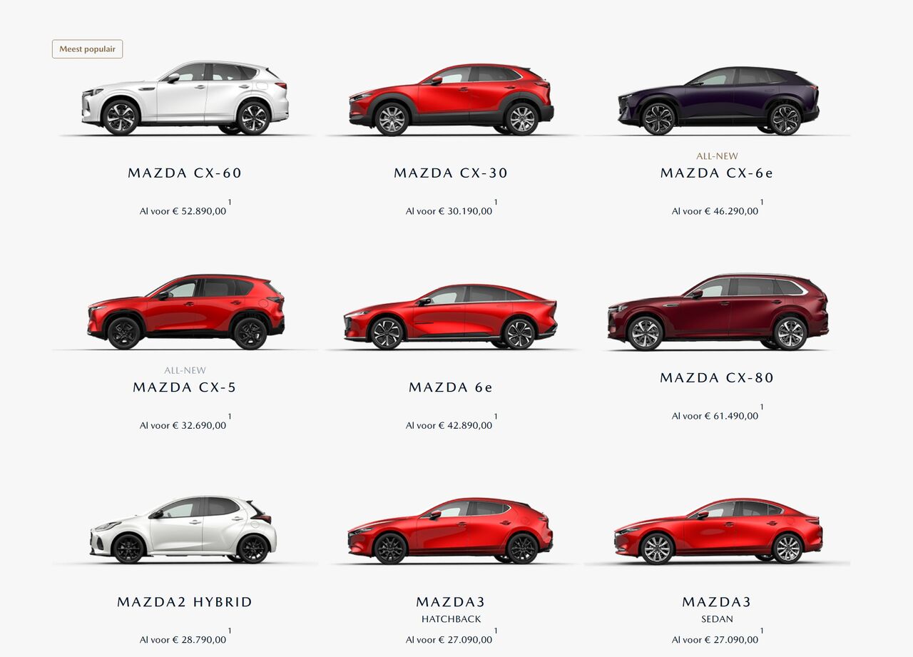 左上に「CX-60」が表示されており、赤文字で「最も人気」と書いてありました。欧州でCX-60が人気というのはあまり聞いたことがありませんが、ベルギーでは最も人気なんでしょうか?