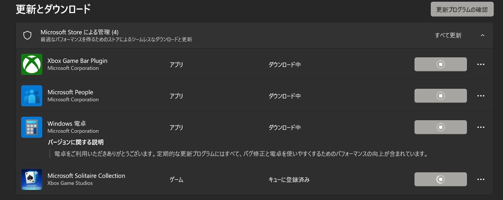 上記の方法は、Microsoft Storeのキャッシュを削除・初期化するコマンドだそうです。初期化と言ってもログイン情報などは保持されていますので、再設定などは不要でした。そして、このコマンドをやるだけで更新欄に表示されることはなくなりました。